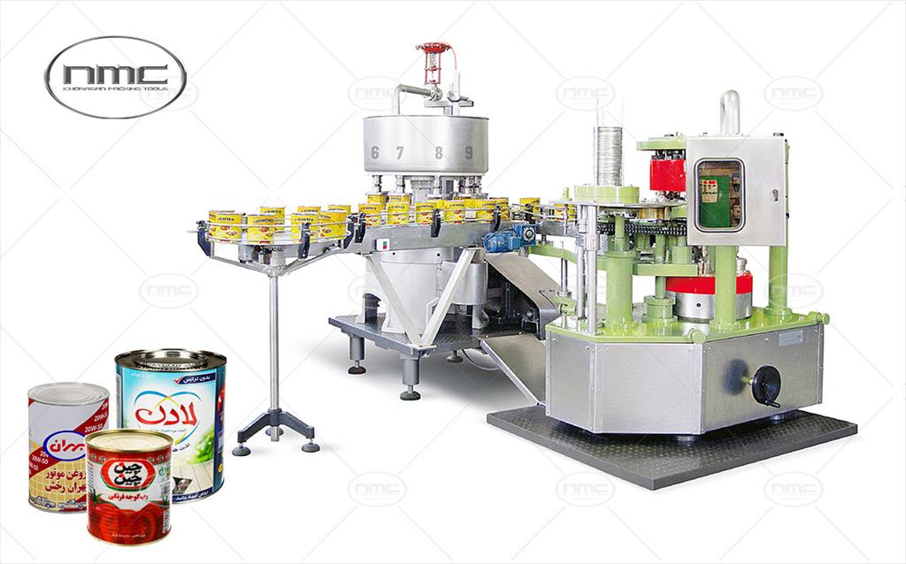 4- مجموعه پرکن و دربند اتوماتیک ویژه مایعات با سیستم روتاری به منظور پرکن و دربندی مواد غذایی مانند روغن خوراکی ، رب و همچنین روغن موتور صنعتی از حجم 1000 گرمی تا 4000 گرم با هدف حذف ریز مایعات در این سیستم
