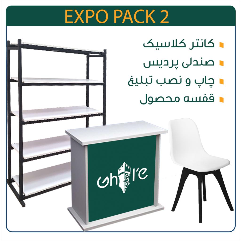 کانتر کلاسیک + چاپ و نصب تبلیغ روی کانتر + صندلی پردیس + قفسه محصول ۵ طبقه